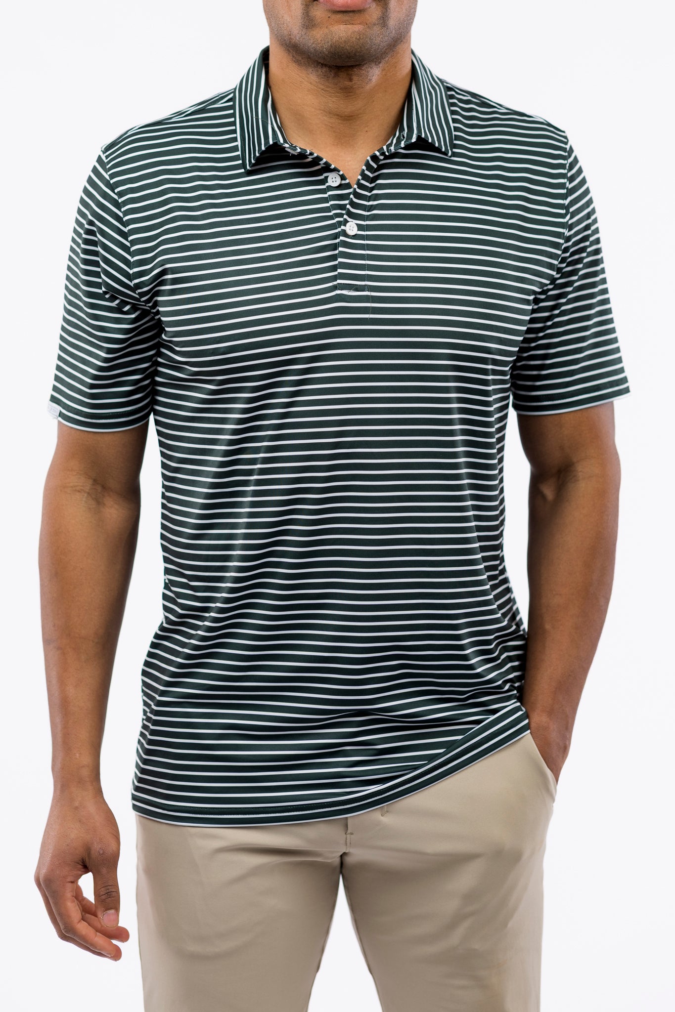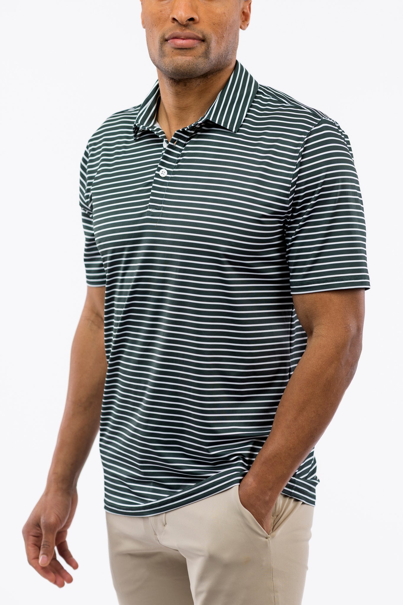 Shown here in Rosemary Stripe. Made in lightweight performance fabric.