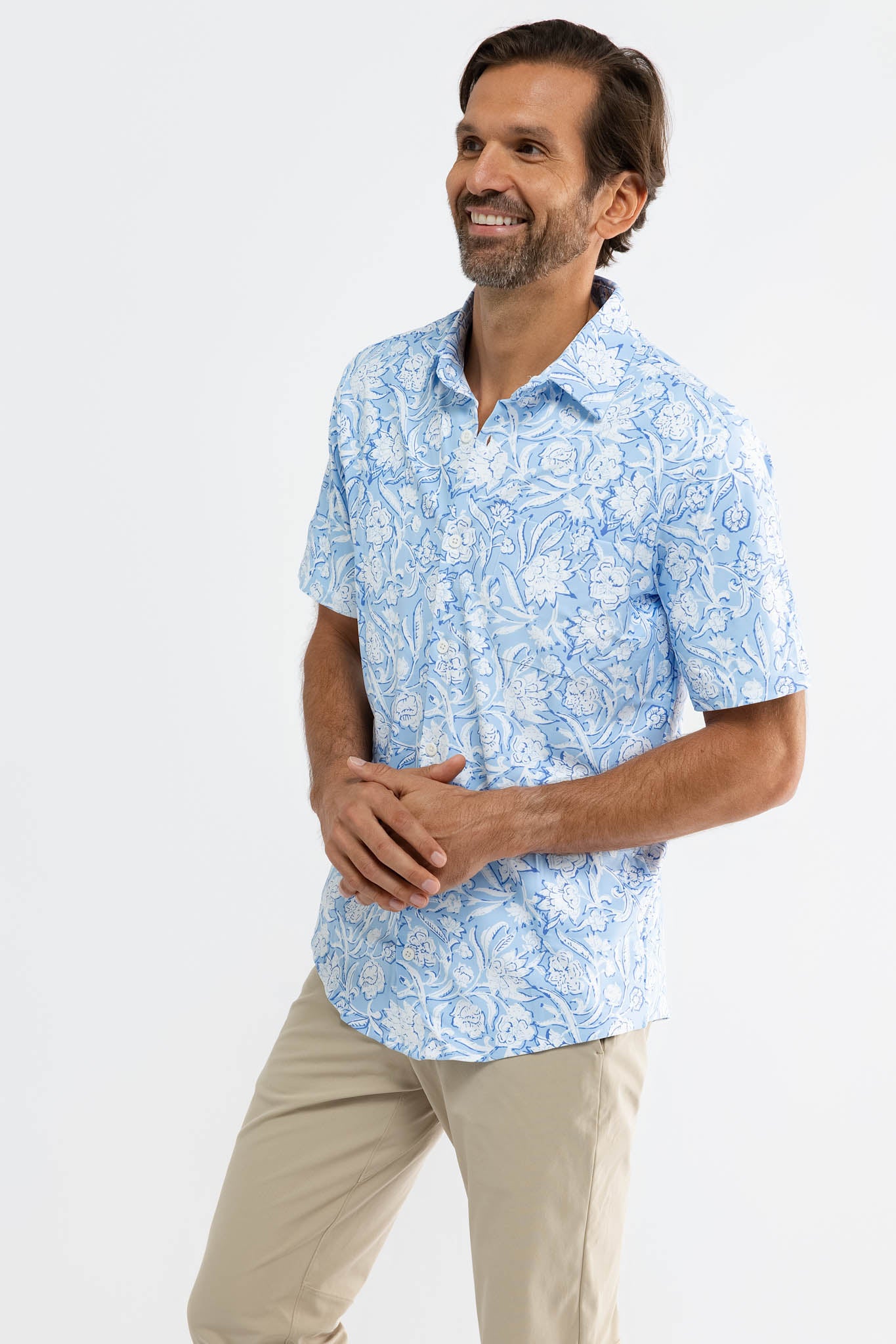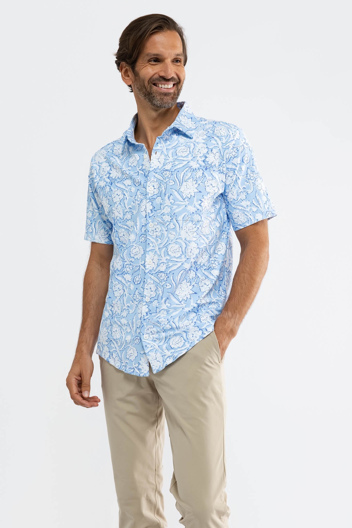 Meet the Boatyard Button-Down. Crafted from our S&Q Stretch fabric, the Boatyard features a versatile button-down style with a collared neckline and chest pocket.
