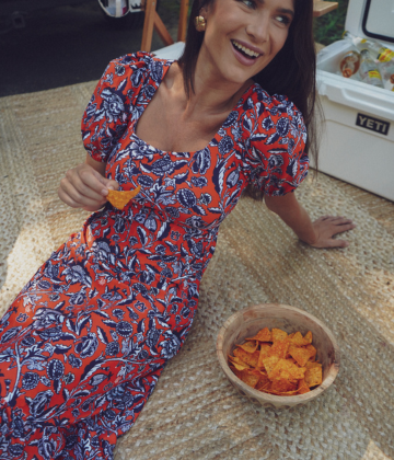 Shown here in Alabama Poppies with White. Made in S&Q Stretch fabric.