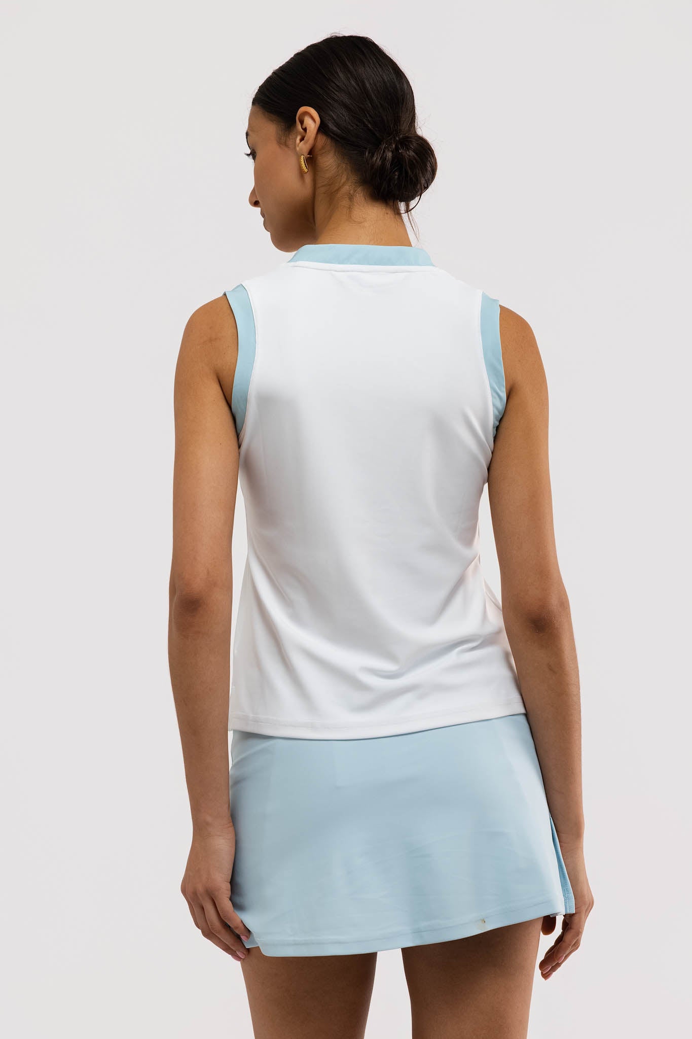 Meet the Stevie Tank. Crafted from our S&Q Stretch fabric, the Stevie features a streamlined athletic silhouette with a trendy, contrast placket.
